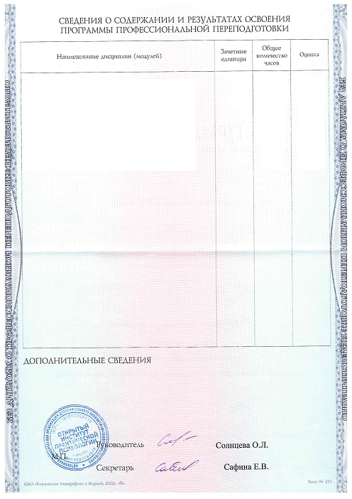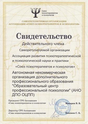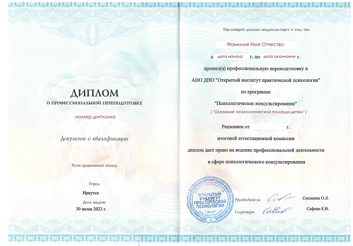 АНО ДПО "Открытый институт практической психологии" (предыдущее название "Образовательный центр профессиональной психологии") существует с 5 марта 2014 года (Свидетельство о государственной регистрации)