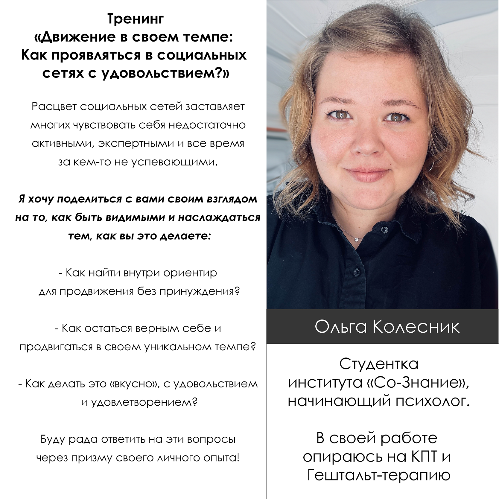 В безопасной обстановке вы сможете протестировать свои новые тренинги, получить конструктивную обратную связь от опытных психологов и поэкспериментировать с новыми идеями.